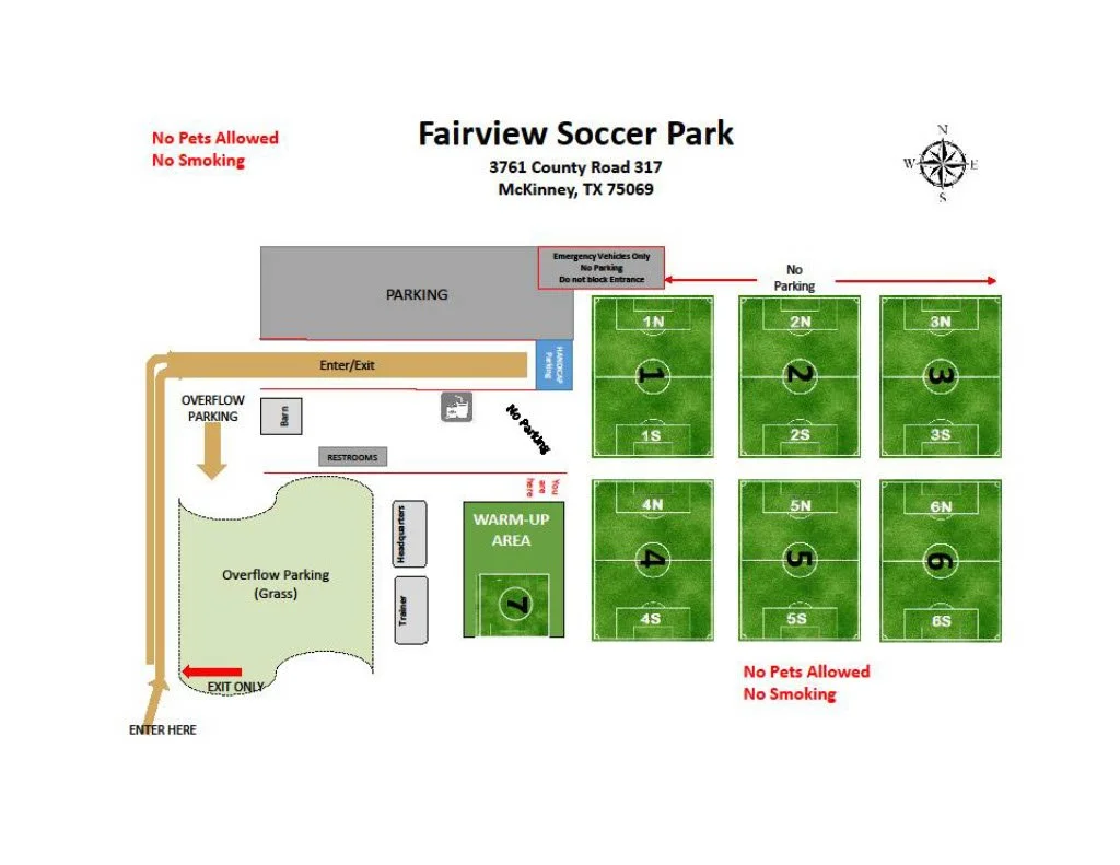 FAIRVIEW SOCCER PARK, LOCATED IN MCKINNEY, TEXAS, IS THE CORNERSTONE FOR TOP-TIER YOUTH SOCCER DEVELOPMENT IN THE NORTH TEXAS AREA. OUR FACILITY, A LIGHTED SPORTS COMPLEX IS DESIGNED TO ACCOMMODATE THE HIGH-LEVEL DEMANDS OF COMPETITIVE SOCCER, CREATING A PROFESSIONAL-GRADE ATMOSPHERE FOR ATHLETES, COACHES, AND FAMILIES.